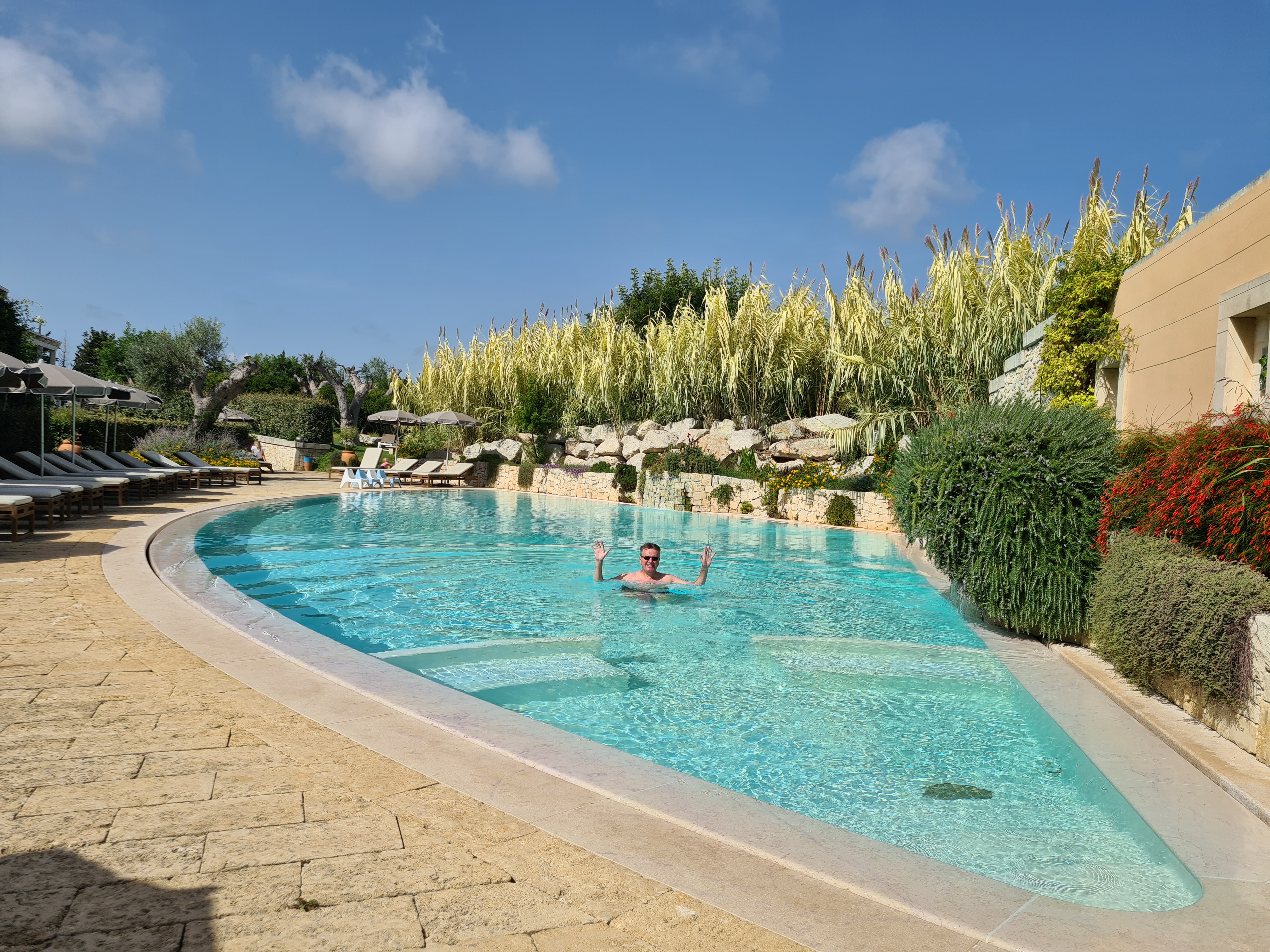 We had booked six nights in Borgo de li Santi, a small complex of about a dozen apartments with a swimming pool. Weighing in at about £120 a night (price varies with the time of year etc) for B&B. Oh God, it was lovely. As it was situated a 10/15-minute walk from the old town and seafront, it is in a quiet spot. The vibe was so mellow we spent a couple of days just relaxing by the pool. I must mention the breakfasts. The hot selection was not the best (almost non-existent) but no fear. The cook was actually a pastry chef. She couldn’t give a toss about bacon and eggs. I do not normally go for the continental sweet stuff for brekky but, my word; cakes, sweeties, pastries, chocolates. Brilliant! I had to have a digestive lie down afterwards. Post breakfast snoozes are so nice.