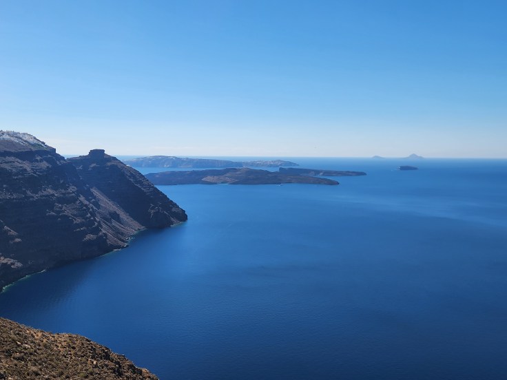 I guess it’s clear from the blog so far that we opted for an indolent five-night stay, but there is stuff to do. You can hire a car and see the island; we didn’t fancy that. There are beaches, and we looked into the possibility, but decided to lie by the pool instead. We have started the walk to Oia twice now, and changed our minds twice on that too, but even the section we did was simply gorgeous. I would have liked to see the excavations at Akrotiri, and I will do so next time.