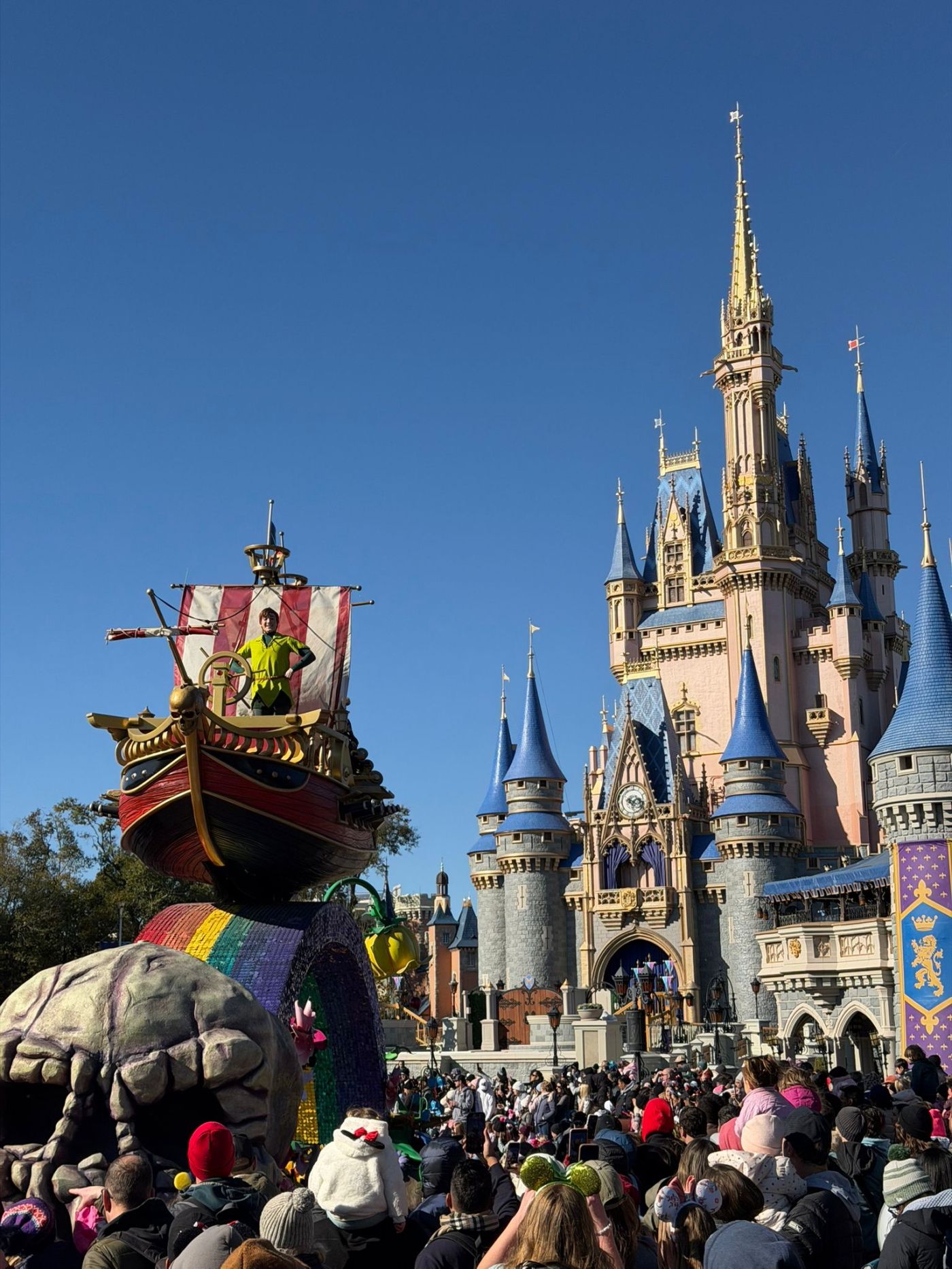 On our first day we went to the Magic Kingdom for an early start at 9.00 am. Guests at Disney resorts can get into the parks an hour before the public. Unfortunately, Florida, the Sunshine State, chose to welcome us with a ‘feels like’ temperature of minus eight Celsius. Seriously, I had it warmer in Finnish Lapland. It was freakish weather; fountains froze and the early visitors scrambled around for shows indoors.