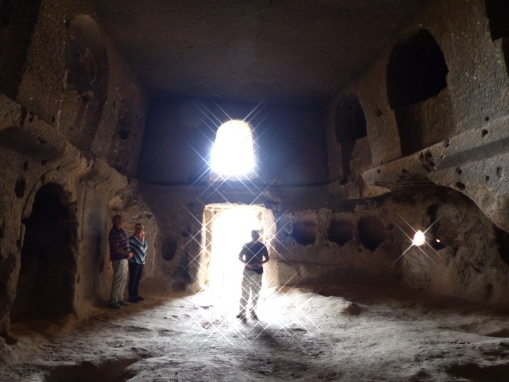 Kaymakli Underground City is pretty amazing (if a little scary) with four floors of the city open to tourists. The purpose of the all this dwarfish burrowing was defence; if an army was passing by the people just hid till they had gone. The city below ground had everything a city above would have, with added claustrophobia.