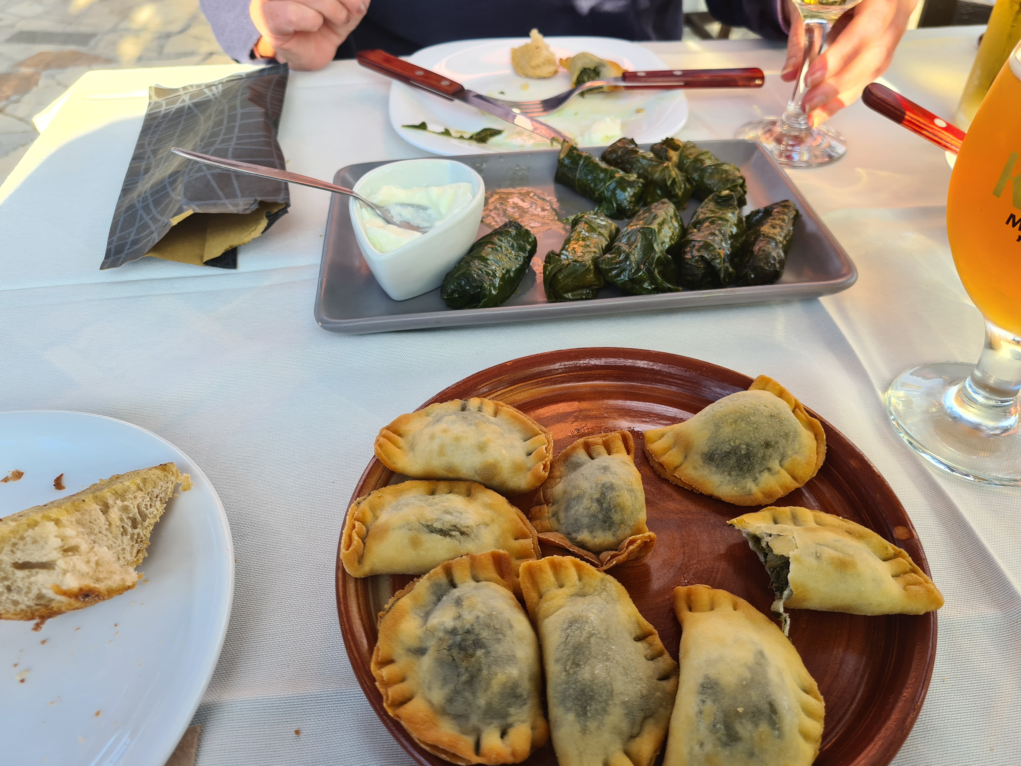 Having just come from Chania, with its gorgeous harbour front vibe, Rethymno lacked the medieval charm we had become used to. In the town there are plenty of well-recommended restaurants. We had lunch at Taverna Othonos. The traditional Greek hospitality was on full throttle. It began with a free zucchini soup and an amuse-bouche, generous wine measures, beer glass straight out of the freezer, free cake for the sweet and a glass of raki. Superb, again, €41 for two people.