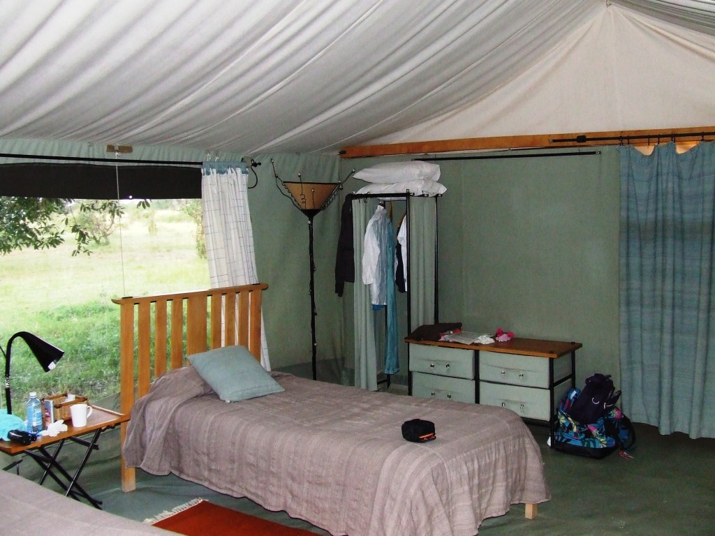 In the evenings twenty or so guests met in the main marquee for dinner, have a few drinks and share stories of the day. As we dined one night, roars of joy and shrieks of agony announced that some lions had made a kill just close by. The camp was unfenced, but a Maasai guard was on hand to cover your journeys around the site and ensure you felt safe. After a few beers, I needed the toilet, so I went to the door and asked a guard to accompany me. He smiled.