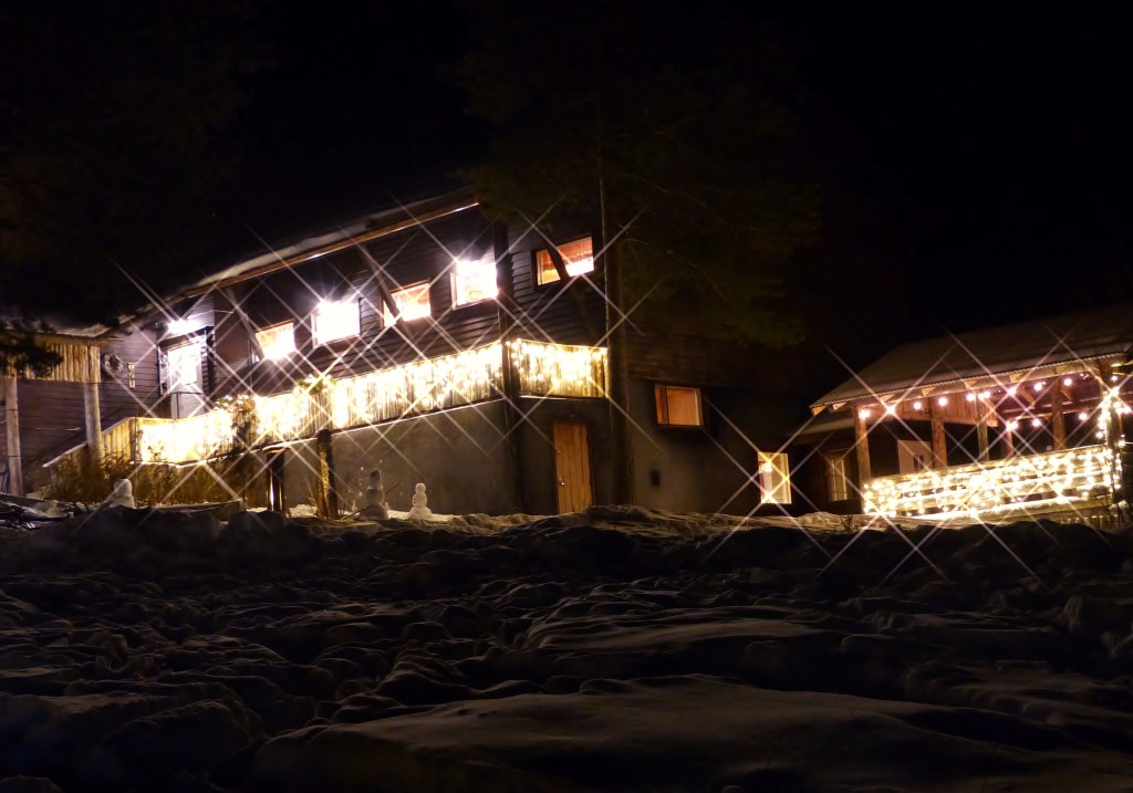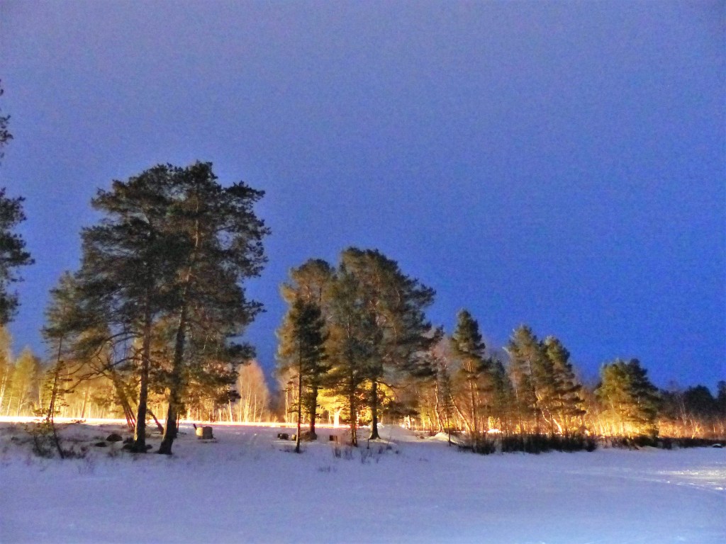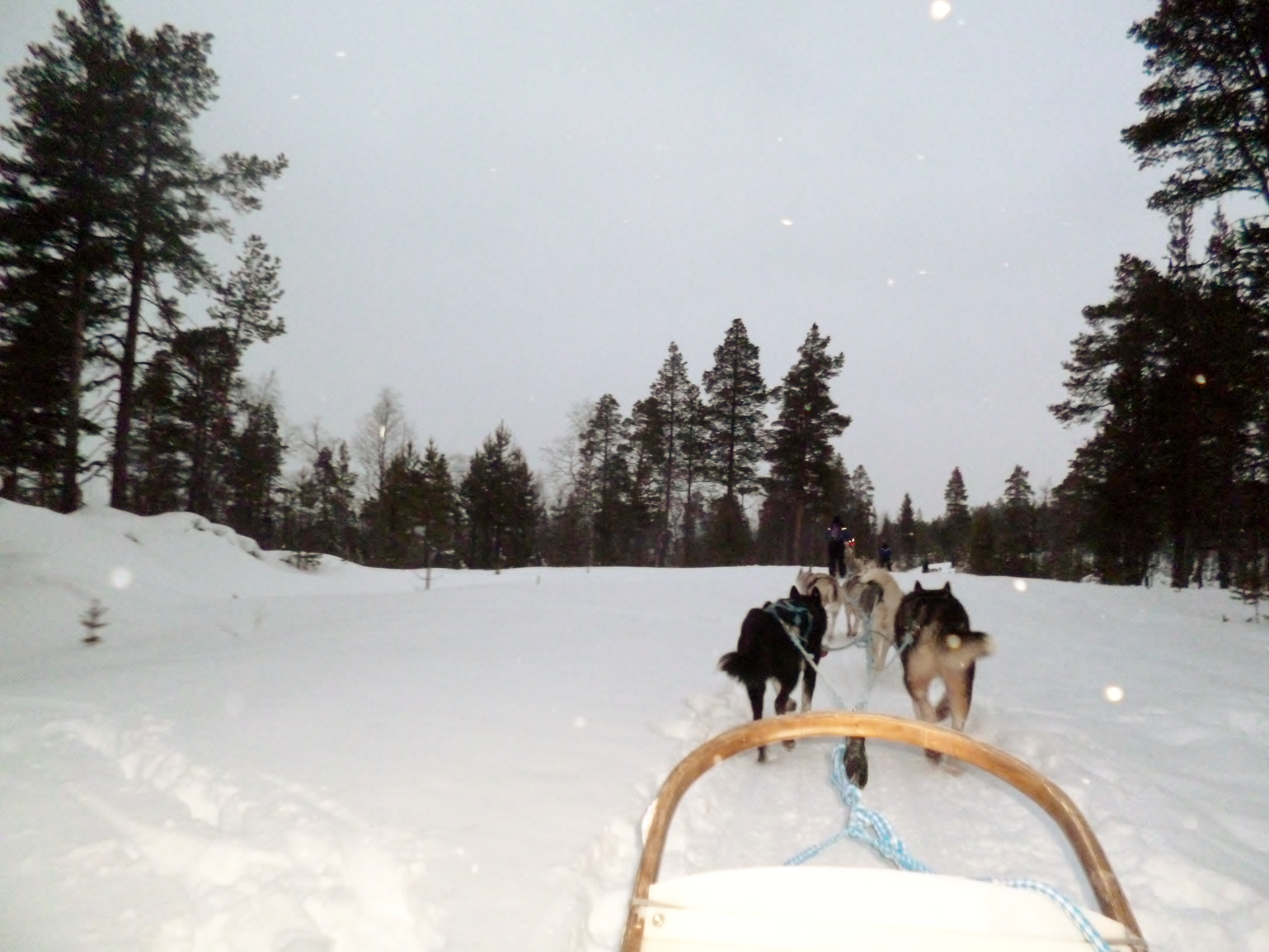 We went to Finnish Lapland, above the Arctic Circle, in December. We flew from Manchester to Helsinki to Ivalo. It was interesting to fly over Finland, as it was a pretty desolate looking place in winter. We were picked up and driven to Lake Menesjärvi. On arrival at the hotel, our driver took a moment to point out various locations in the grounds, fair enough. In just those few seconds, my body heat dissipated into the freezing air as my testicles shot upwards and took refuge from the cold next to my kidneys.