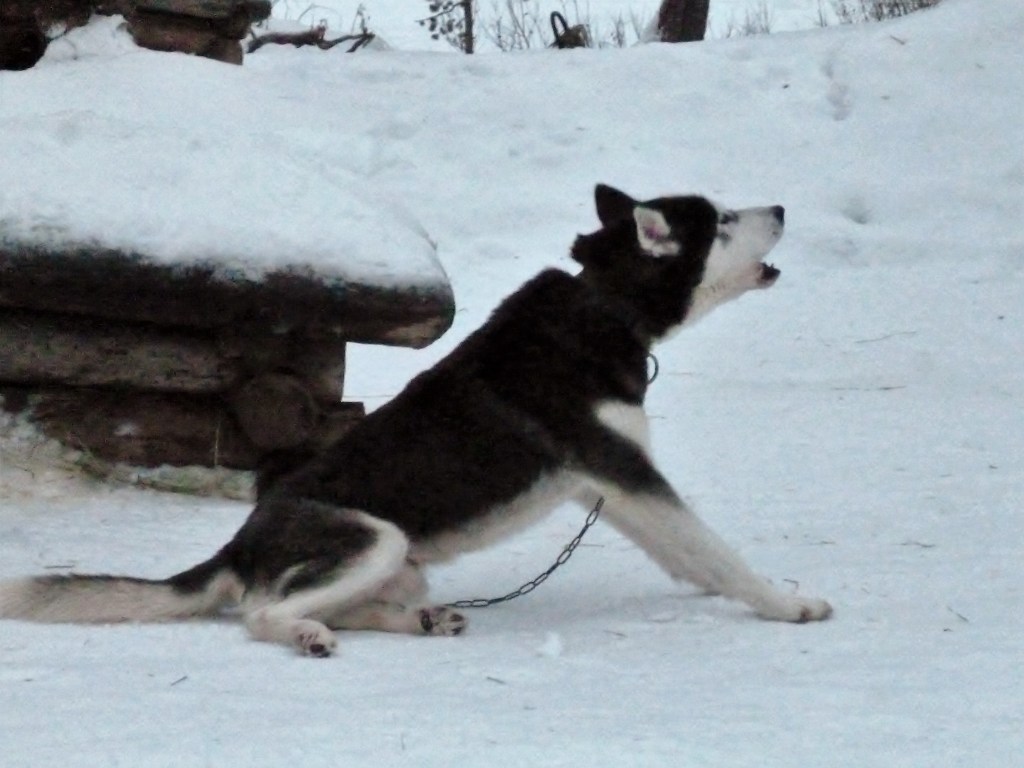 One trip I did have doubts about was the dog sledding. Though I’m not scared of dogs, I don’t like the brutes and I was indifferent to the days’ prospects. When we got to the Husky farm we were greeted by the snarls and barks of eighty or so of them, many of whom were clearly wolves. We were met by a striking young blonde woman who was to be our chaperone.