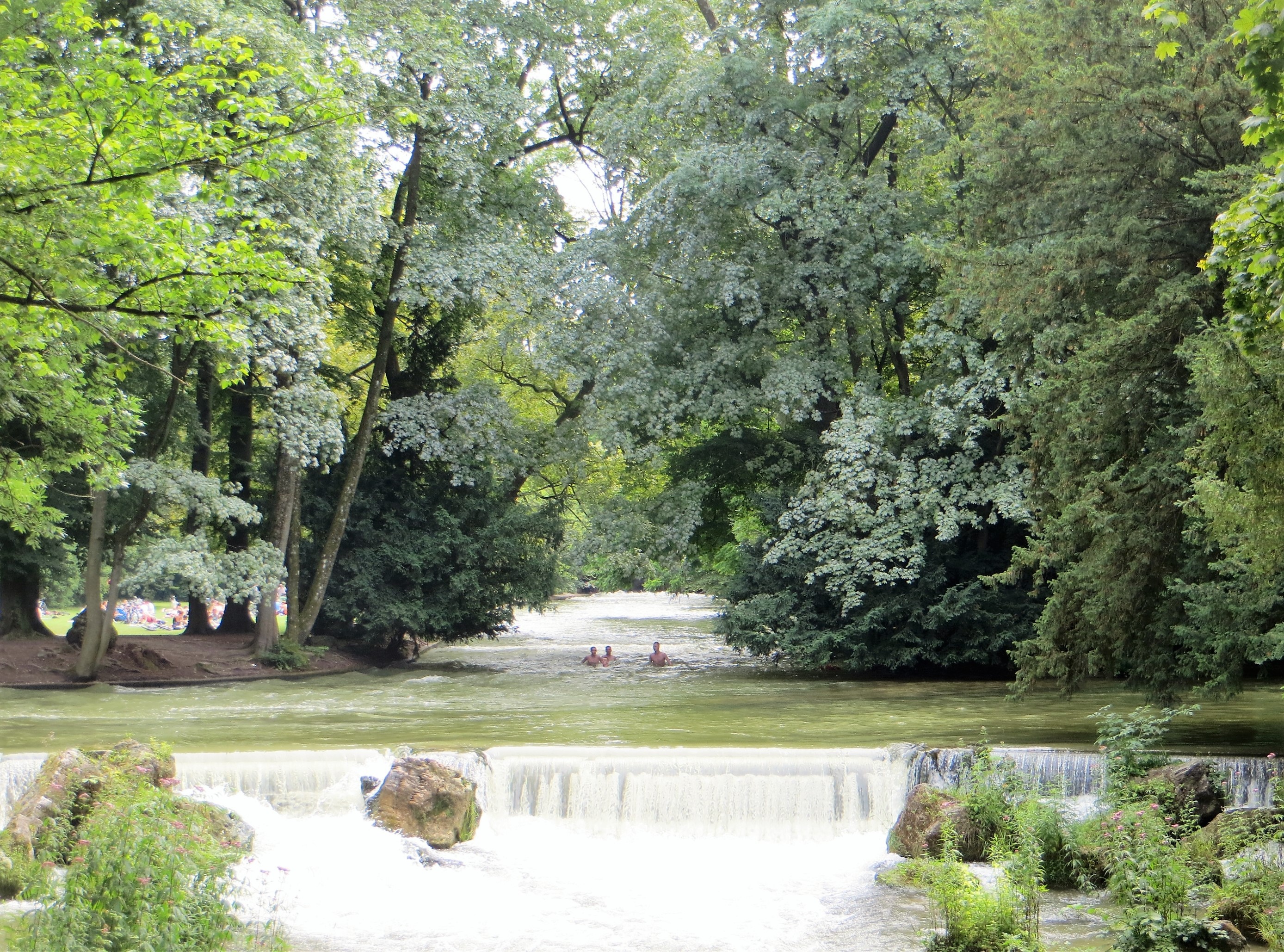 The Englischer Garten is a large park in the town and offers a pleasant stroll on a sunny day. Alongside the greenery there are novelty buildings and follies, open-air bars and cafés. There’s a particularly superb man-made river which flows for 2km which you can actually surf in. I found the park very impressive apart from the opportunity, in certain allocated areas, for nude sunbathing.