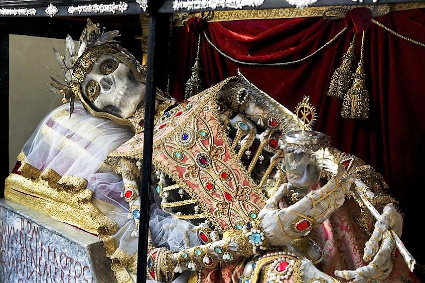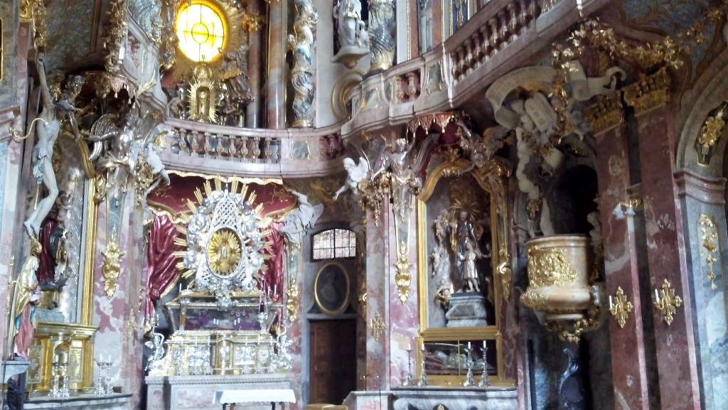 Perhaps it’s just my tastes, I don’t think any city is worth more than three nights but, that said, there’s a lot to see and do in Munich. I loved Saint Johann Nepomuk Church, also known as the Asam Church. It’s decorated in the Rococo style, utterly over the top in 18th century bling, but I was spellbound. It’s like Dame Edna Everage and Lady Gaga did the interior design. Despite the gaudiness, the building had a reverent atmosphere. It was a triumph of content over form. I popped in a couple of times. There are other nice Churches too. The Peterskirche (Church of Saint Peter) contains the skeleton of Saint Munditia. She was beheaded in the early 4th century but was reunited with her skull later. This will have cheered her up enormously. Today she is the poster girl for Weight Watchers.