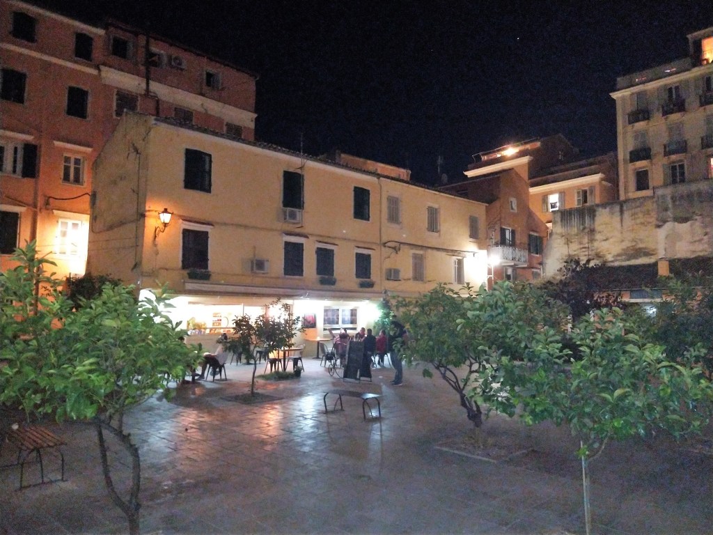 We were five nights here, and it was an enjoyable stay. We did go to a restaurant in the hilltop village to dine overlooking the great view of the bay(s) and that was splendid. There is a monastery and we intended to go but we were busy doing nothing. And with good beaches, good restaurants, good sunbathing, and good beer, what’s not to like? For the last eight nights of our vacation we were off to Parga and, to break up the trip, we had two nights in Corfu Town. I’m very glad we did.