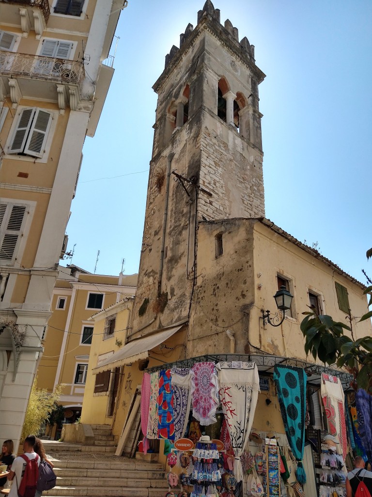 We caught an air-conditioned bus across the island. A taxi would have cost €40, the bus was a mere €2.50. taxis are insanely expensive in some Greek resorts. I didn’t know what to expect of the island’s capital. Having been part of the Venetian Empire, this left a noticeably Italianate mark on its architecture. It’s not a big place, set as it is in and around two medieval castles. I expect Corfu new town spreads further afield, but I didn’t see that.