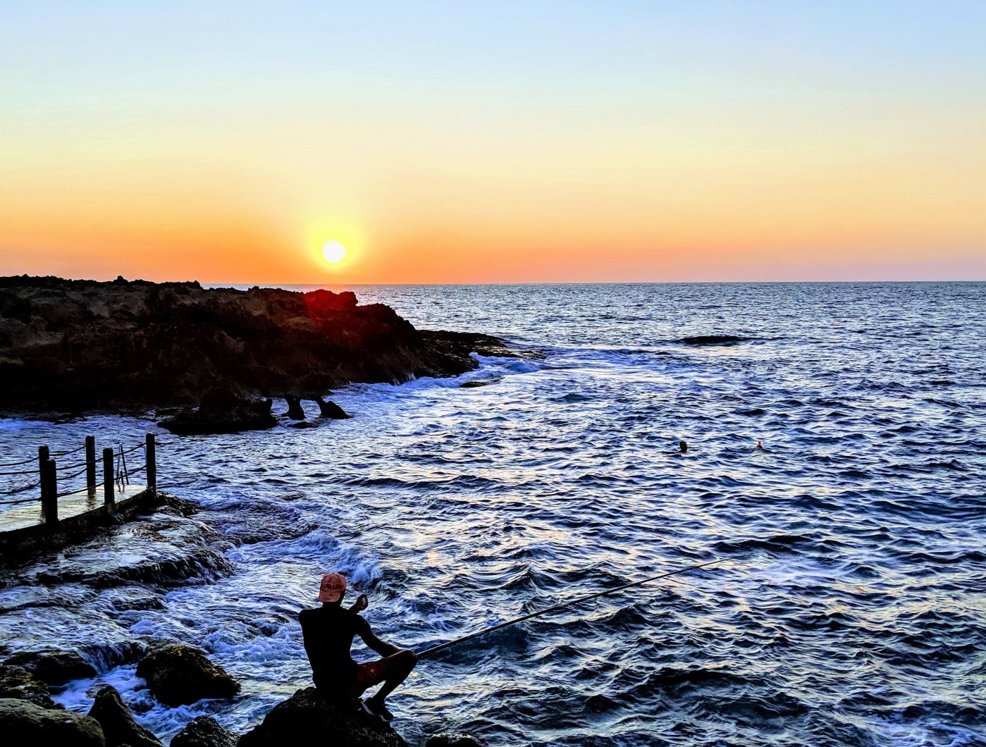 It’s a pretty good hotel with some caveats. The man made ‘beach’ area is okay, with a little rectangular lagoon to swim in. Access to the sea proper isn’t easy for the non-swimmer. I had problems with my snorkels, which were steaming up. I’ve since learned that if you spit in them and wash it off, they work fine. Comically, there is a superb sunset on this part of the coast, but the hotel has no convenient place on the beach to watch it. There is a bar where it would be visible from, but it shuts at 5.30; just before sunset! It’s a crazy missed opportunity for the hotel. The next hotel around the bay has set up their bar to give the perfect sunset view.