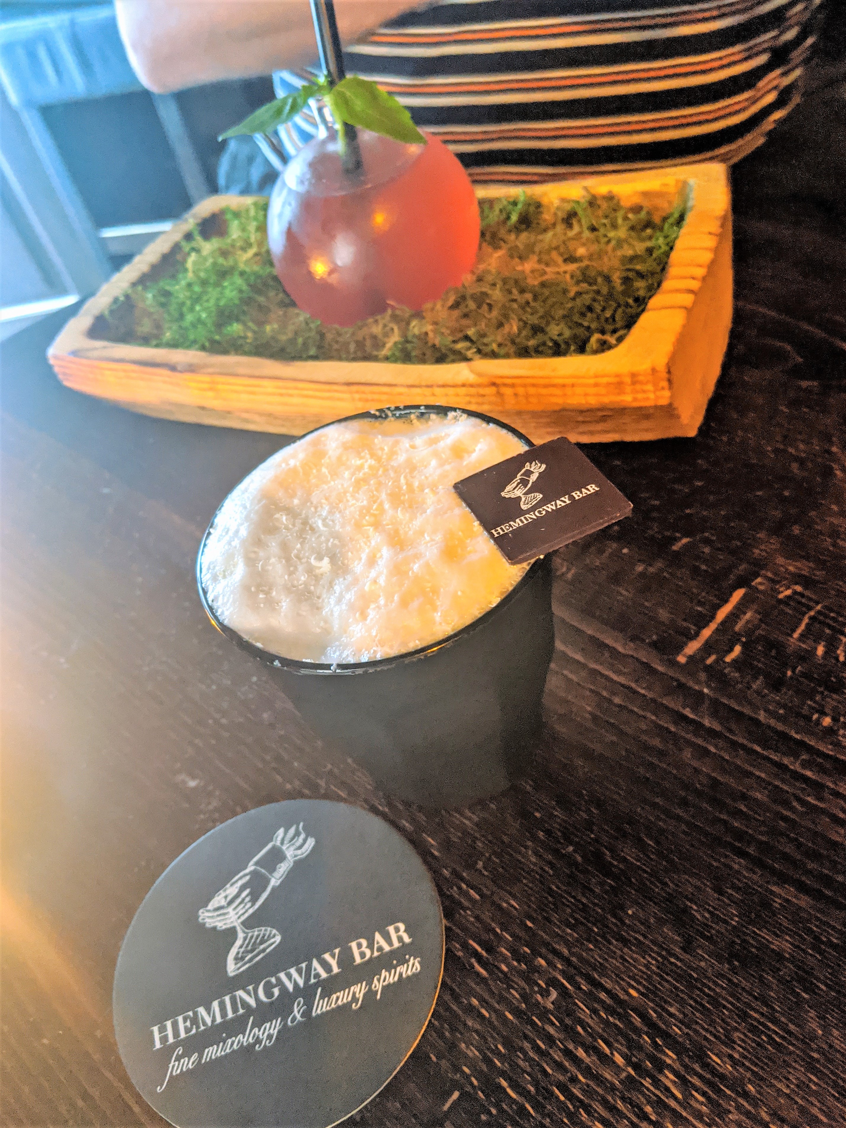 We went for a stroll to a few bars, including the famous Hemingway’s, in the evening. Beware, you usually need to book here, as it’s very popular. It’s a mellow, shadowed place, and aims to cater for people less old farty than me, to be fair. I nearly ate the hand cleaner. It looked like a little soft mint. However, as we squirted sanitiser from an unpretentious pipette (ahem) onto our hands, the waiter poured water onto the ‘mint’ and it swelled up into a little towel. Well, there you go. I’m glad I didn’t eat it. The bespoke cocktails were excellent, and I’ll venture to say, unique. I had an apple one. It had a bitter sweet tasting like a sherbet flying saucer with flavours of rum, tea and a scent of basil. It was good to be fair! To give an idea of the attention to detail, here’s the three cocktails we had and their ingredients;
