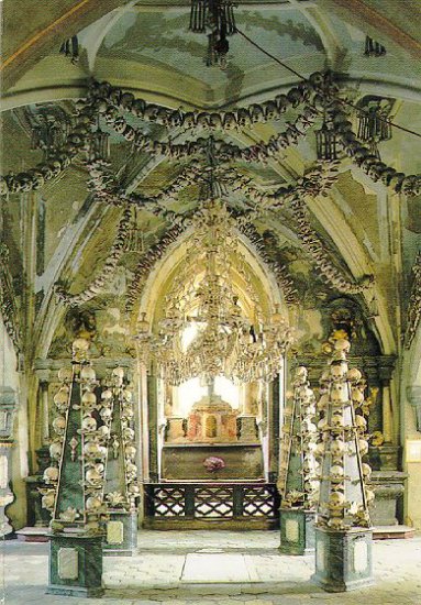 On the last day, we caught a train out of Prague to see the Sedlec Ossuary in the town of Kutná Hora. It’s a little Church decorated solely with human bones. The story goes that the monks who ran the place in the 14th century were faced with an awkward problem; what to do with all the bodies from the plague? One bright spark decided to use them to decorate the chapel. Consequently, he chopped the cadavers up and tried to arrange them tastefully as montages, pyramidic buildings and a large chandelier. Like a butcher’s shop window that got out of hand. Alas, he came unstuck. Inevitably, as the flesh began to putrefy, the associated smell became unbearable for the worshipping community, who were also sorely tried by the rats and flies that gathered to feast. They were short of bums on pews for a while. Thankfully, nature, and putrefaction, took its course and, after a few squirts of Febreze, the congregation returned six months later to a place of worship decorated solely with human skellingtons.