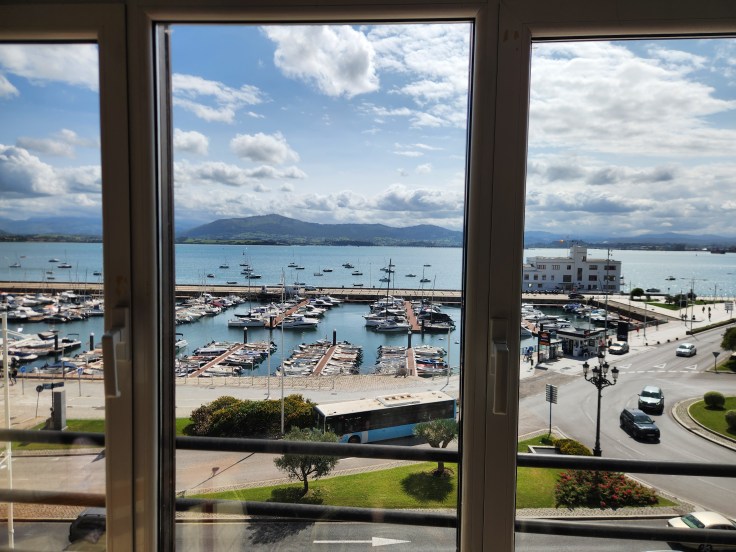 We had an apartment called ‘Vacare Sabor a Mar’ and paid £666 for four people for three nights on booking.com. So, two decent bedrooms, two bathrooms, a reasonably sized kitchen, and a lounge with a view over the marina. It was very good, the only downside being some traffic noise and, on the Saturday, a few noisy revellers down below. But it was pretty much in the town centre, and this put all its amenities on our doorstep.