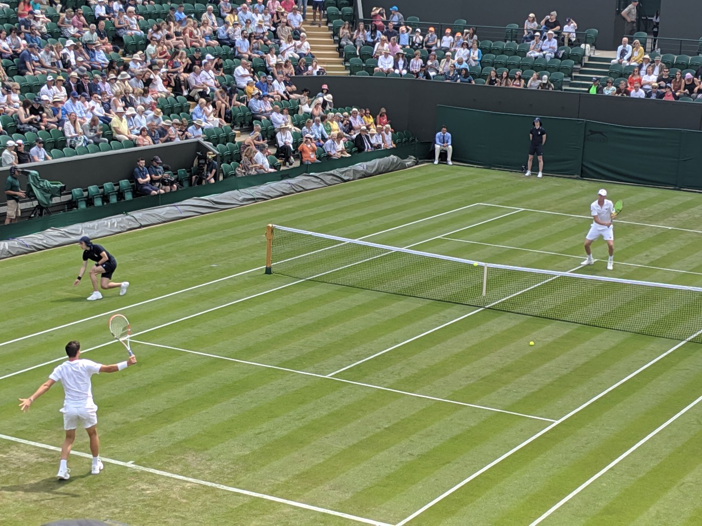 This year we went on the Tuesday of the first week and had seats on court number two. They were near the back, but the court is intimate, so our view was superb. Now here’s the thing I think most people don’t know. The seats only cost £43 each, for eight hours of tennis. On our court that was two ladies and two men’s singles matches. I imagine that most folk think that it would cost a lot more than that. Travelling, eating, drinking, and staying in London is the pricey bit.